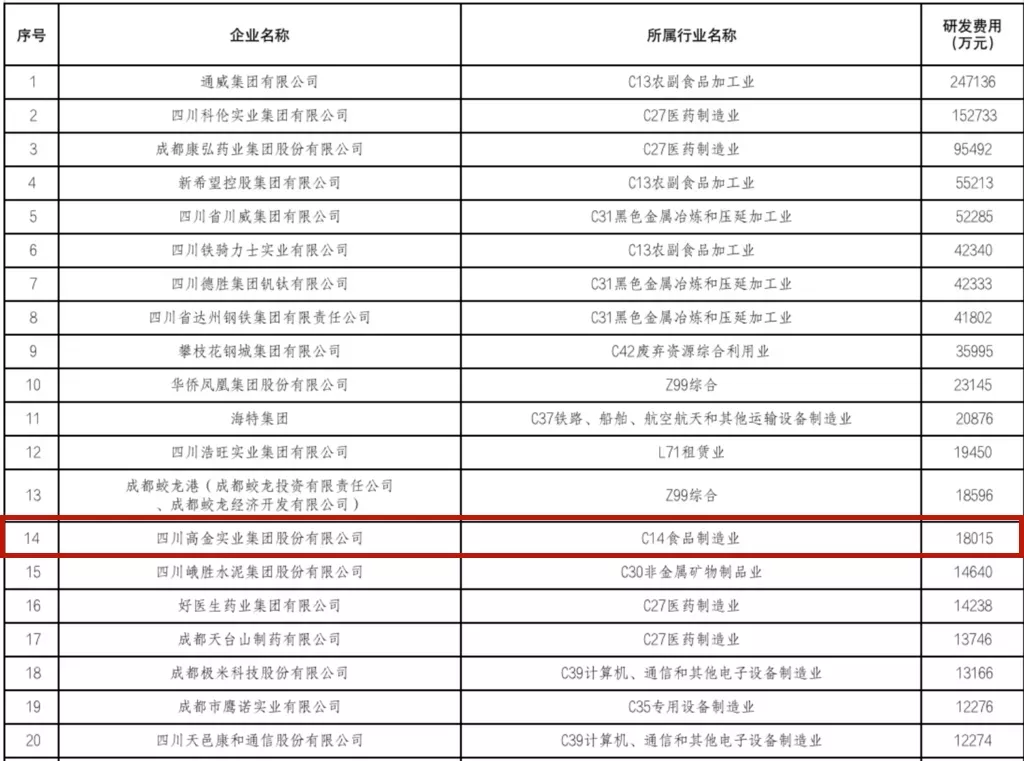 以研創(chuàng)新 硬核實力 | 高金集團(tuán)位列四川民營企業(yè)研發(fā)投入前二十